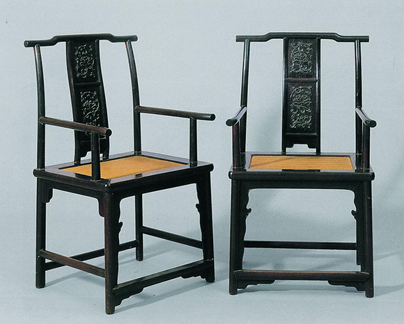 這種椅子的歷史較悠久,南北朝時就已經出現,唐代以后使用普遍。靠背椅的造型特征是:只有靠背,沒有扶手,而靠背搭腦是不出頭的。它的主要變化在靠背上,經常被透雕各種各樣的精美花紋。