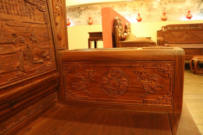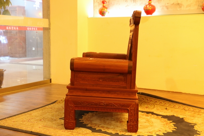 該篇文章共分三段落組成,除描繪了蘭亭的絕美景致以及王羲之一行人在集會時(shí)的所遇經(jīng)過外,也同時(shí)抒發(fā)了作者當(dāng)時(shí)因?yàn)槭⑹聼o常而作出的“修短隨化,終期于盡”的人生感嘆。不過,細(xì)細(xì)品味之,就能從文章的字句中,深切地體會到王羲之那積極入世的人生觀,與那老莊無為學(xué)說所形成的鮮明對比。而今天,我們福林堂紅木要為大家介紹的這一款沙發(fā)——壯志凌云沙發(fā),就是為了表達(dá)這一初衷和愿望,以寄托鴻鵠之志,壯志凌云。該款沙發(fā)以明清古典家具傳統(tǒng)工藝為基礎(chǔ),采用燙蠟的裝飾工藝,更好的展現(xiàn)了其木材優(yōu)美的紋理。沙發(fā)的背板處除雕刻有王羲之《蘭亭序》的浮雕字體外,還配有山水、亭臺樓閣、以及各種象征福壽之寓意的如仙鶴、壽瓜、蝙蝠、鳥鳳等多種吉祥紋飾,整體的畫風(fēng)顯得氣勢磅礴,極好地彰顯了主人的宏偉志向與不凡的人生追求。