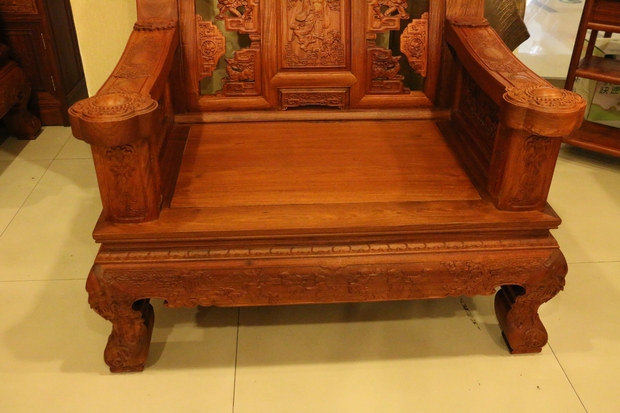 今天,我們福林堂紅木要為大家介紹的這一款沙發,就是以某位設計大師的名字為命名的客廳系列紅木家具——彪云沙發。該款沙發以神仙題材為主要雕刻,配之以各種龍紋飾、麒麟、鹿、蝙蝠、祥云、壽紋等,其間木雕雕刻細致入微,將單人座沙發上的彌勒佛以及三人座長沙發上的其他三處仙人們的神態、表情、動作都刻畫地惟妙惟肖、栩栩如生。而彌勒佛正代表了中華民族寬容、和善、智慧、幽默、快樂的精神,也蘊含了人們對美好未來的期待,是為中華民族的形象代表。沙發整體結構厚重,有獨特的木質紋理覆蓋,十分漂亮。另外沙發材質同樣采用地我們福林堂紅木優質地緬甸花梨木制作,堅固耐用,品質有保障,具有極高的收藏價值。