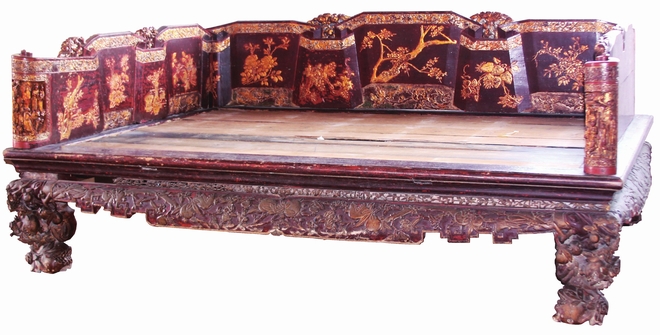 清中期·朱漆貼金大漆床