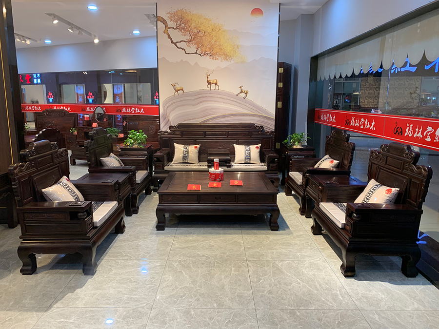 “U”形擺放,是客廳紅木沙發一種常見的擺放形式,適合于任何客廳。