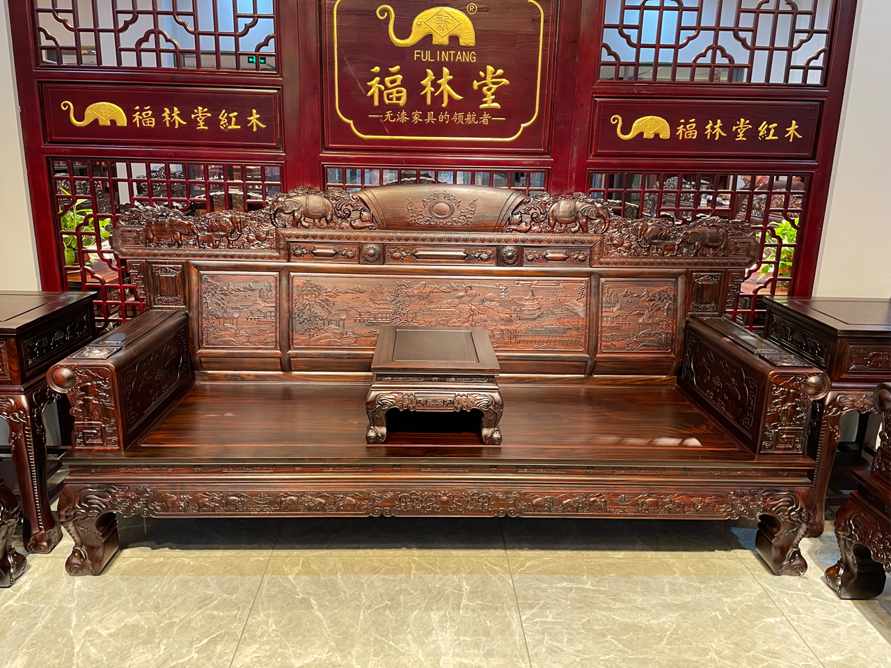酸枝木散熱性、透氣性佳,微微沁出的淡香能夠提神,更重要的是非常的牢固,也適于制作桌椅。清代江藩者著《舟車見聞錄》記載紫榆來自海舶,似紫檀,無蟹爪紋。刳之其味如醋,故名酸枝。酸枝初伐時,心材淡紅色至赤色,經長時間放置,可沉于水。顏色逐漸轉化為紫紅色,光澤變為暗沉。它為紫檀屬,但酸枝和紫檀是兩種不同的硬木,酸枝為貴重木材(蘇南地區俗稱老紅木),經打磨可達到平整如鑒,撫之細滑清涼,木紋美觀,不易腐朽,經久耐用。酸枝木雖不如我們知道的黃花梨和紫檀名貴,但在中式古典家居環境中也有著非常獨特的位置,是上品。